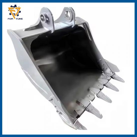 Godet à roches pour excavatrice : Godet à roches résistant à l'usure pour sols rocheux et durs. La partie inférieure du godet standard est soudée avec un bloc de protection, ce qui renforce sa solidité. Le choix d'un acier haute résistance prolonge considérablement sa durée de vie, améliore les performances d'excavation et optimise la rentabilité. Il est adapté à l'excavation de roches dures, de roches sous-solides et de roches altérées mélangées au sol, au chargement de roches solides et de minerais concassés, ainsi qu'à d'autres opérations lourdes.