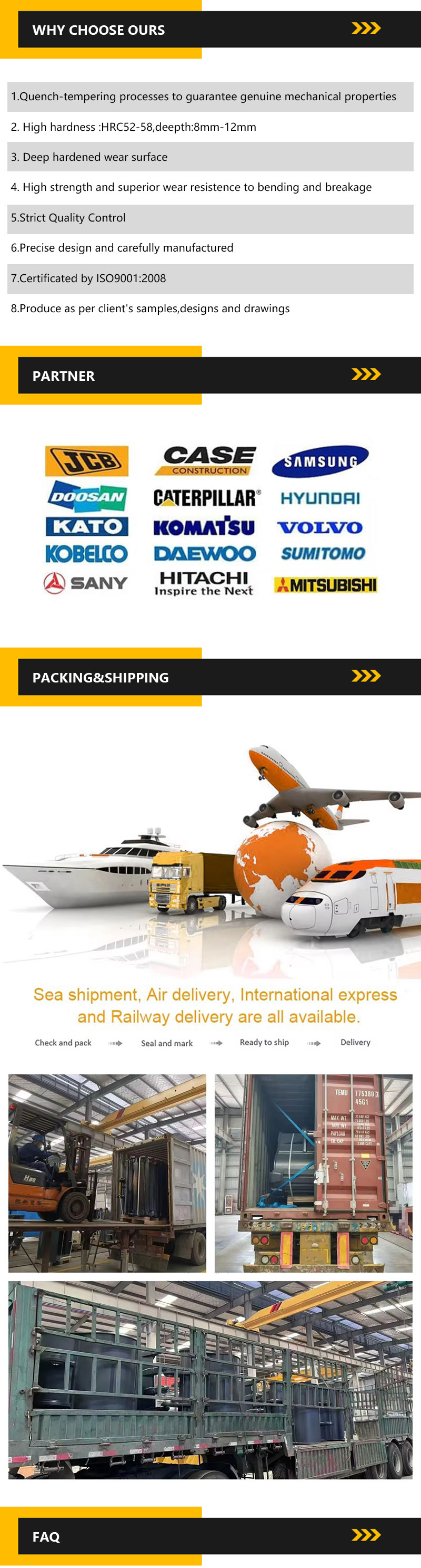 3.Qu'en est-il du contrôle qualité des pièces de train de roulement des engins de chantier, des excavatrices et des bulldozers ?