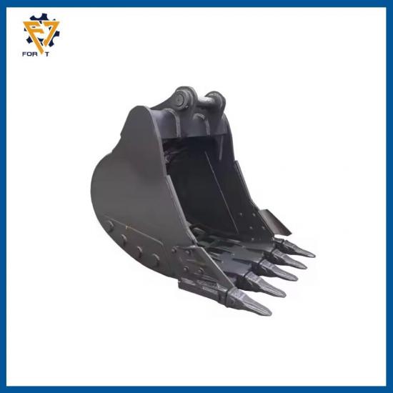 Godet à roches pour excavatrice : Godet à roches résistant à l'usure pour sols rocheux et durs. La partie inférieure du godet standard est soudée avec un bloc de protection, ce qui renforce sa solidité. Le choix d'un acier haute résistance prolonge considérablement sa durée de vie, améliore les performances d'excavation et optimise la rentabilité. Il est adapté à l'excavation de roches dures, de roches sous-solides et de roches altérées mélangées au sol, au chargement de roches solides et de minerais concassés, ainsi qu'à d'autres opérations lourdes.