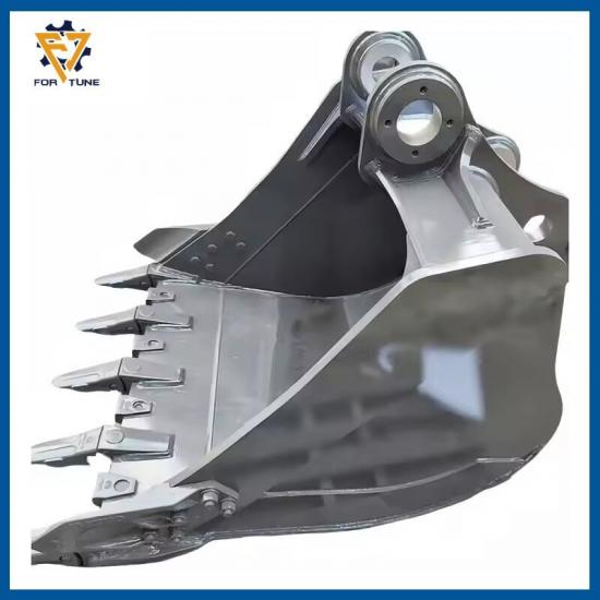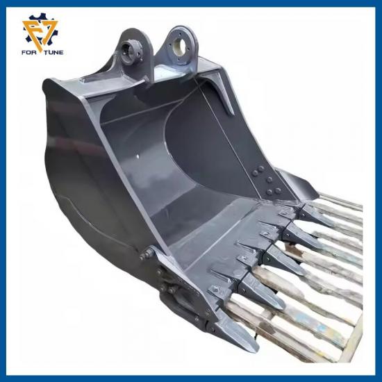 Godet à roches pour excavatrice : Godet à roches résistant à l'usure pour sols rocheux et durs. La partie inférieure du godet standard est soudée avec un bloc de protection, ce qui renforce sa solidité. Le choix d'un acier haute résistance prolonge considérablement sa durée de vie, améliore les performances d'excavation et optimise la rentabilité. Il est adapté à l'excavation de roches dures, de roches sous-solides et de roches altérées mélangées au sol, au chargement de roches solides et de minerais concassés, ainsi qu'à d'autres opérations lourdes.